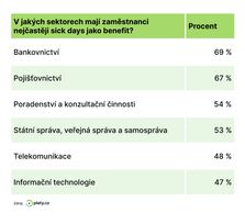 Současná situace na trhu práce si žádá zavádění nejrůznějších nadstandardních benefitů, kterými se zaměstnavatelé snaží získat a také udržet své zaměstnance. Jedním z takových zajímavých benefitů nad rámec zákoníku práce jsou tzv. sick days – placené zdravotní volno na vyléčení, které zaměstnanec může čerpat bez lékařského potvrzení. Analýza portálu Platy.cz ukázala, v kterých odvětvích tento benefit mohou zaměstnanci využívat nejčastěji a jaké další příbuzné benefity od zaměstnavatelů dostávají.