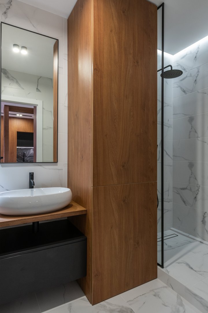 „Pokud máte v koupelně dostatek úložného prostoru a nepotřebujete jej za zrcadlovou skříňkou, nezapomeňte na dostatečně velké zrcadlo. Je zřejmé, že vám musí umožnit vidět se alespoň k hrudníku. Čím větší zrcadlo, tím více odraženého světla a opticky více prostoru. A znovu, stejně jako u skříní, zvažte objednání vlastního zrcadla bez těžkého rámu. Cena tohoto řešení je relativně malá a vizuální efekt bude velmi působivý,“ doplňuje Lucie Hronová z Amirro.