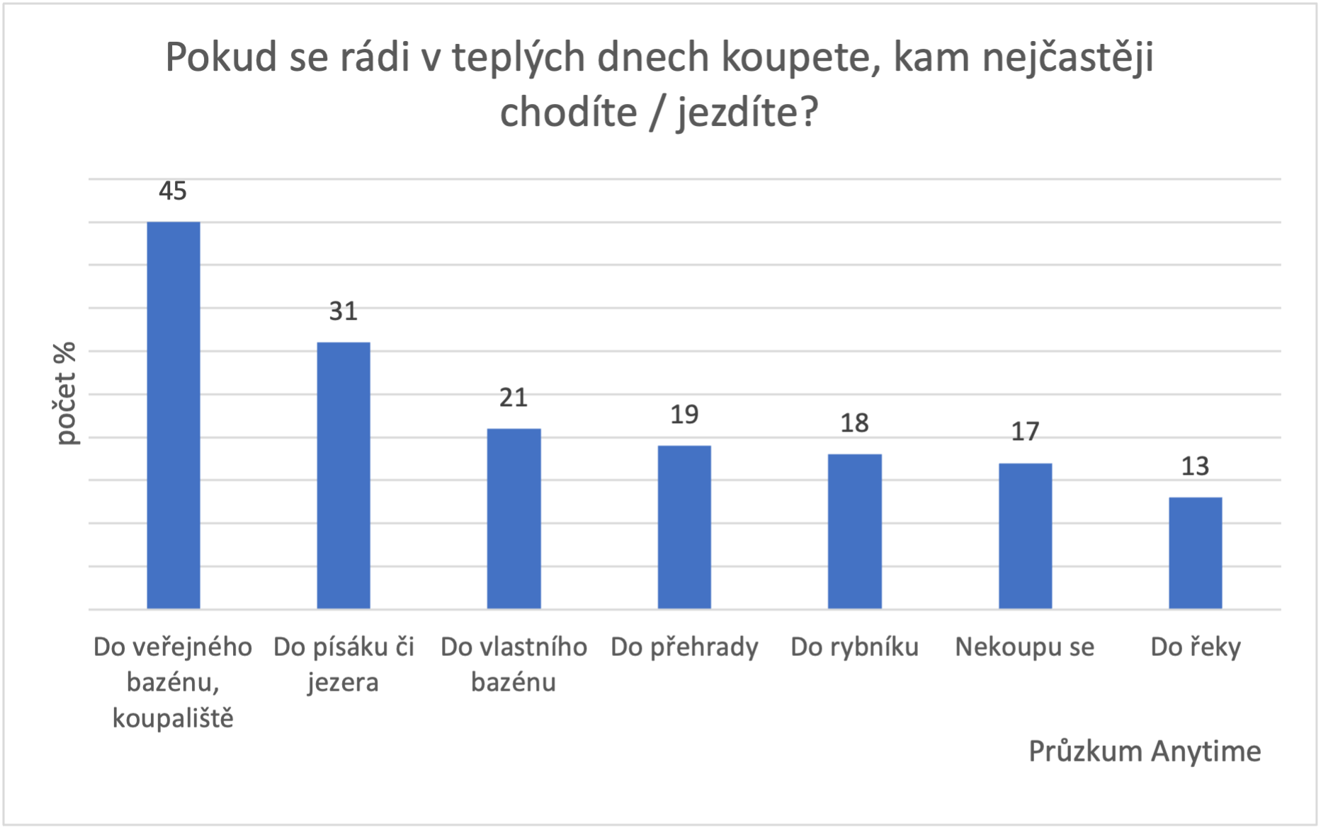 Graf, Kam nejčastěji se jezdíte koupat, průzkum Anytime