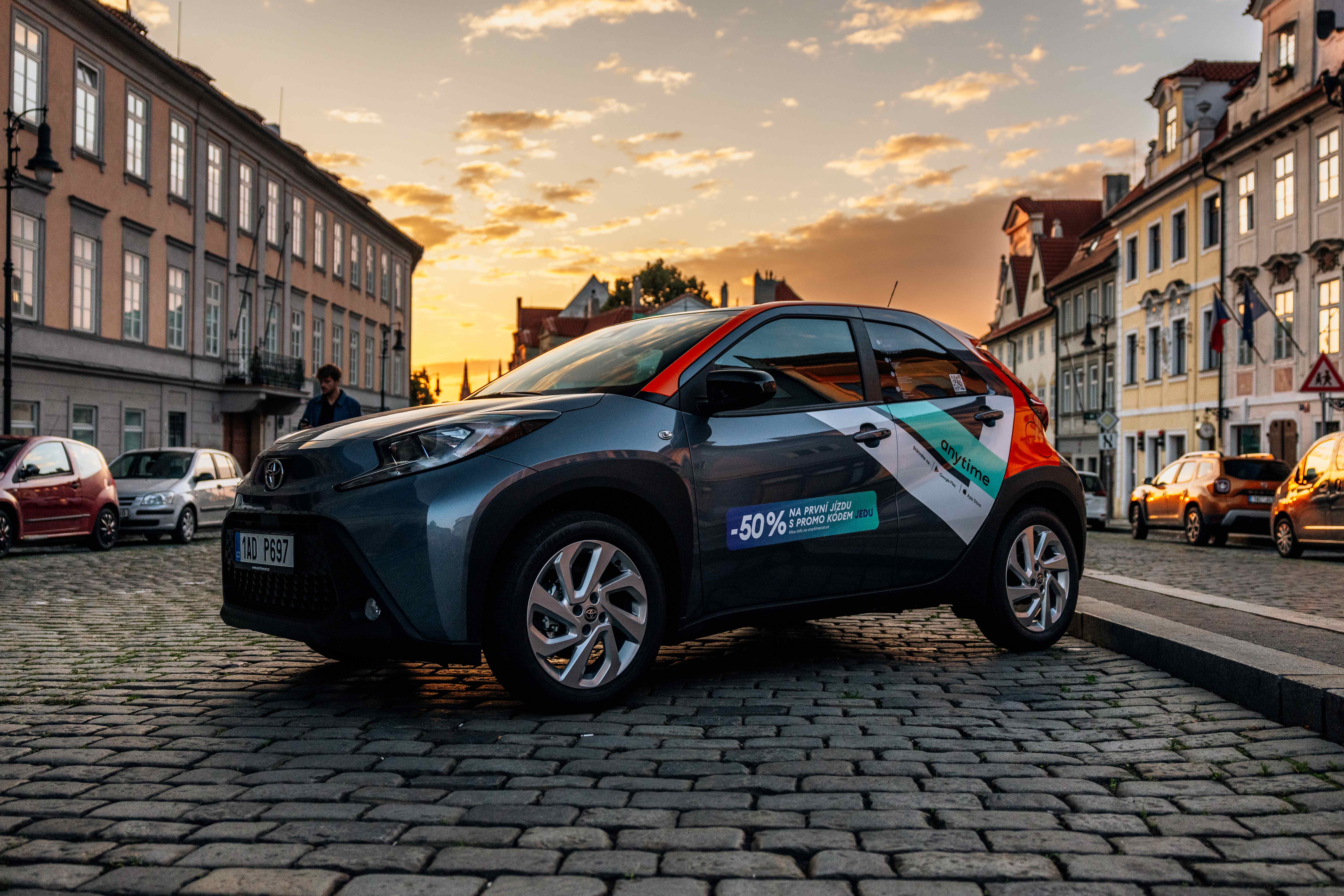Anytime carsharing, přední hráč na poli služeb sdílených vozů, rozšiřuje své služby o krátkodobé pronájmy sdílených skútrů a v rámci obměny vozového parku přináší ke stávajícím hybridním vozům Toyota Yaris, C-HR, Corolla Hatchback a Combi nově benzínové Toyoty Aygo. Jako třešnička na dortu se ve vozovém parku Anytime také nově vyjímá plně elektrická exkluzivní Toyota bZ4X. Celkově nyní vozový park Anytime čítá více než 600 sdílených automobilů a téměř 100 skútrů.