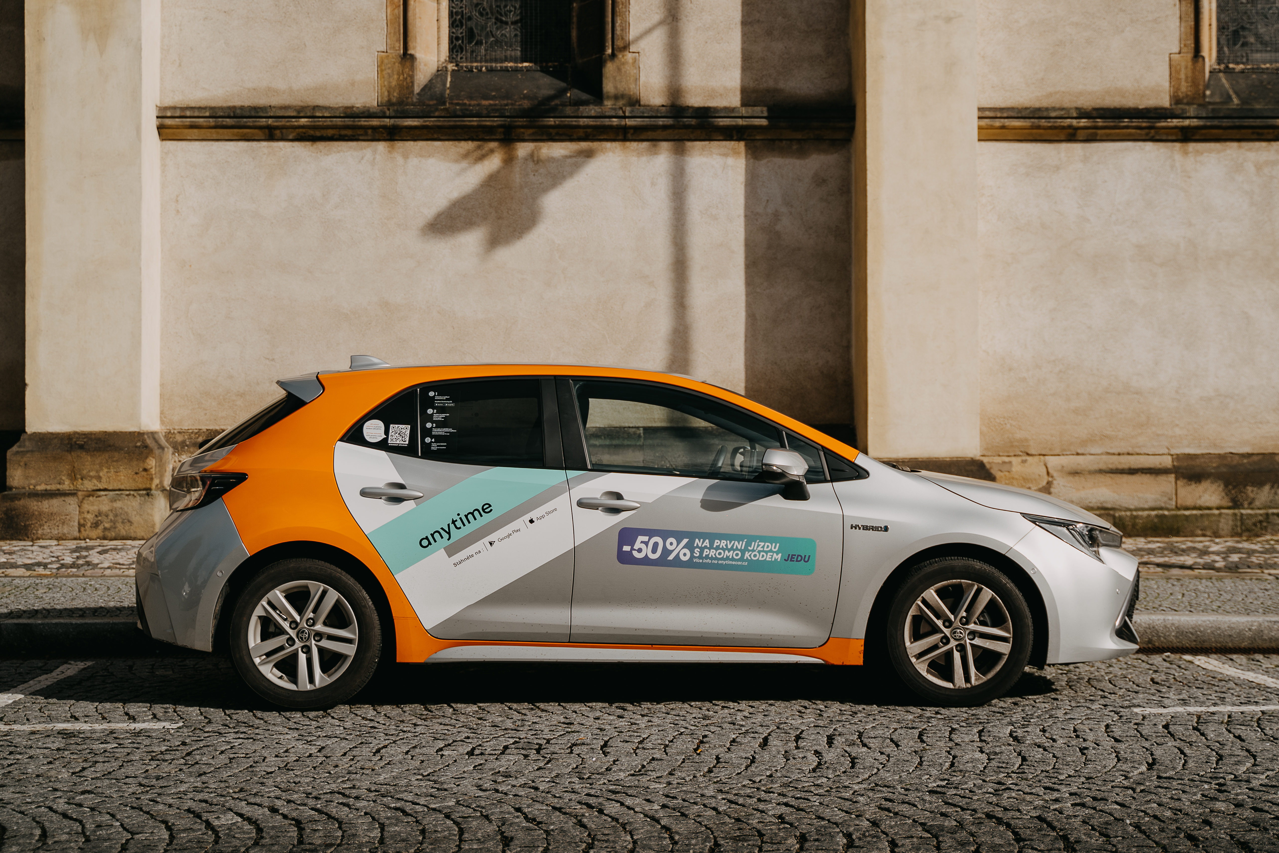 Anytime je carsharingová služba v Praze s tarify od jedné minuty až po týden. Vozový park je aktuálně složen z několika stovek vozů Toyota Yaris a Toyota Corolla, vše hybridy s automatickou převodovkou a parkovací kamerou. Častým mýtem je, že vozy lze využívat pouze v Praze, a že nemohou vyjet ze zóny, která je označena na mapě. Vůz je však třeba do této určené zóny pouze vrátit. Jinak je možné s autem cestovat kamkoliv v rámci ČR. Výhodou je, že auto není nutné vracet na stejné místo.