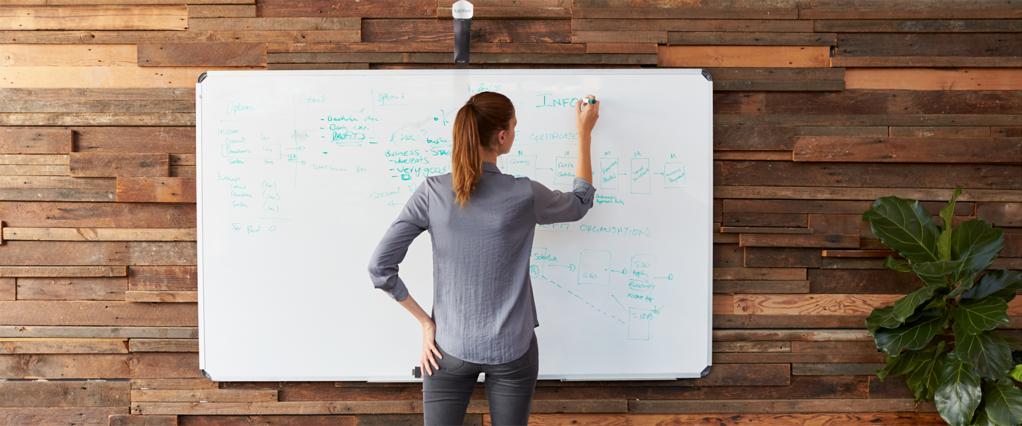 Lidé stále více řeší otázku, jak z domácího pracovního prostředí udělat kreativnější místo k práci. Speciální řešení Kaptivo je kamera pro on-line snímání a sdílení obsahu vytvořeného na domácí tabuli – whiteboardu.