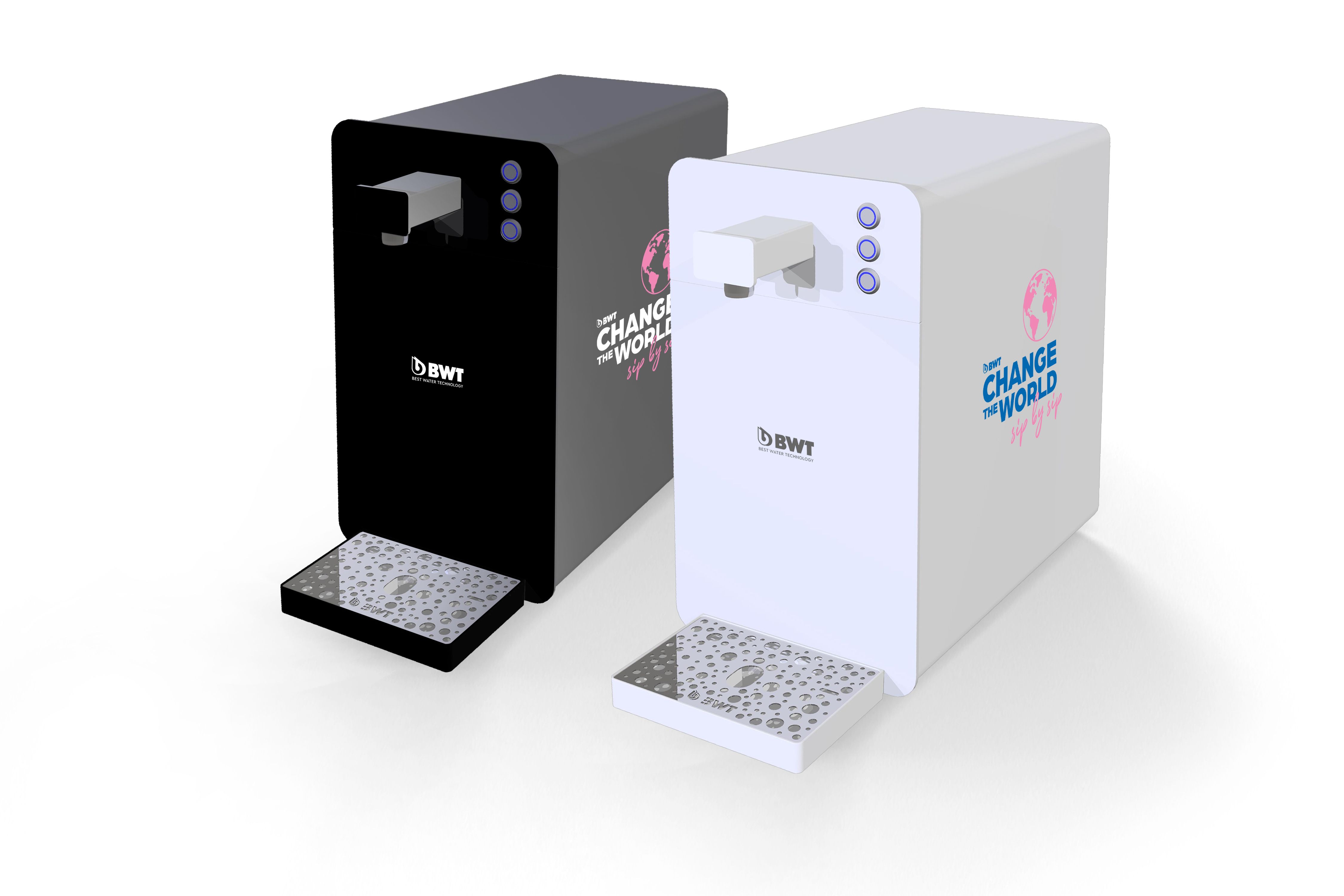 Se záplavou plastového odpadu na pracovištích a v domácnostech a zbytečnými emisemi CO2 při dopravě lahví s vodou lze velmi snadno něco udělat: používejte místní vodu z kohoutku a upravujte ji (odfiltrujte chlor a zápach, přidejte magnesium). Pro každého se pak ve výdejníku BWT najde to pravé. Ať již máte rádi vodu neperlivou, chlazenou, perlivou nebo horkou, případně ochucenou o osvěžující esence.