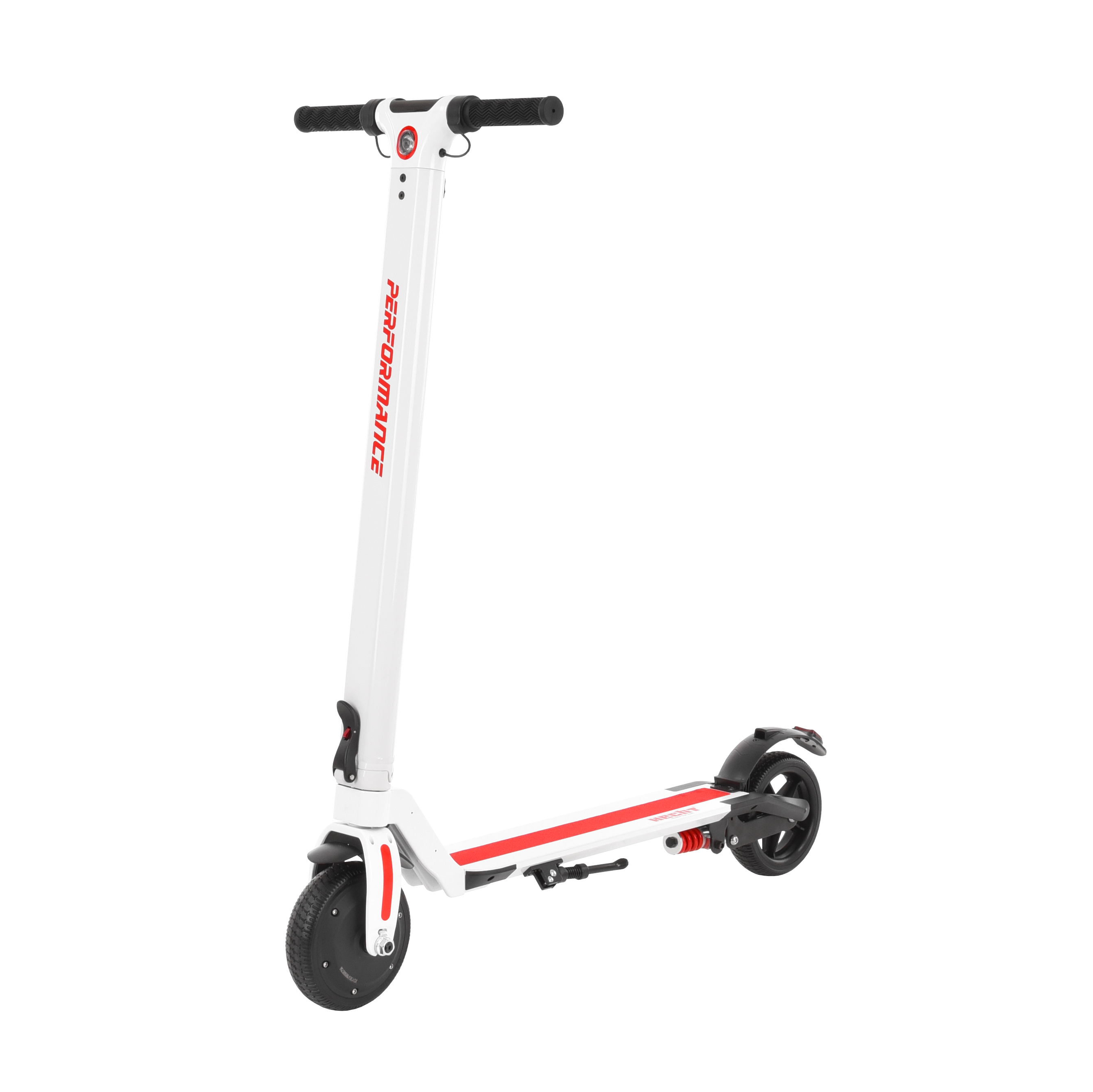 Akumulátorová skládací koloběžka v bílo červeném provedení je ideální pro volnočasové aktivity. Koloběžka uhání maximální rychlostí 25 km/h. Aby byla jízda pohodlnější, je zadní kolo odpružené. Jízda se ovládá palcem pomocí páček na řídítkách. Mezi madly řídítek je ovládací panel s tachometrem. Na něm je zobrazena aktuální rychlost, stav akumulátoru, rozsvícení světel, nebo například aktivita bluetooth. Koloběžka je totiž vybavena bluetooth pro komunikaci s chytrými telefony. Pomocí aplikace, která je dostupná pro Android nebo Apple je možné na telefonu monitorovat například rychlost, ujetou vzdálenost, stav akumulátoru, nebo předpokládaný zbývající dojezd. Zároveň lze přímo v telefonu nastavovat maximální rychlost koloběžky.