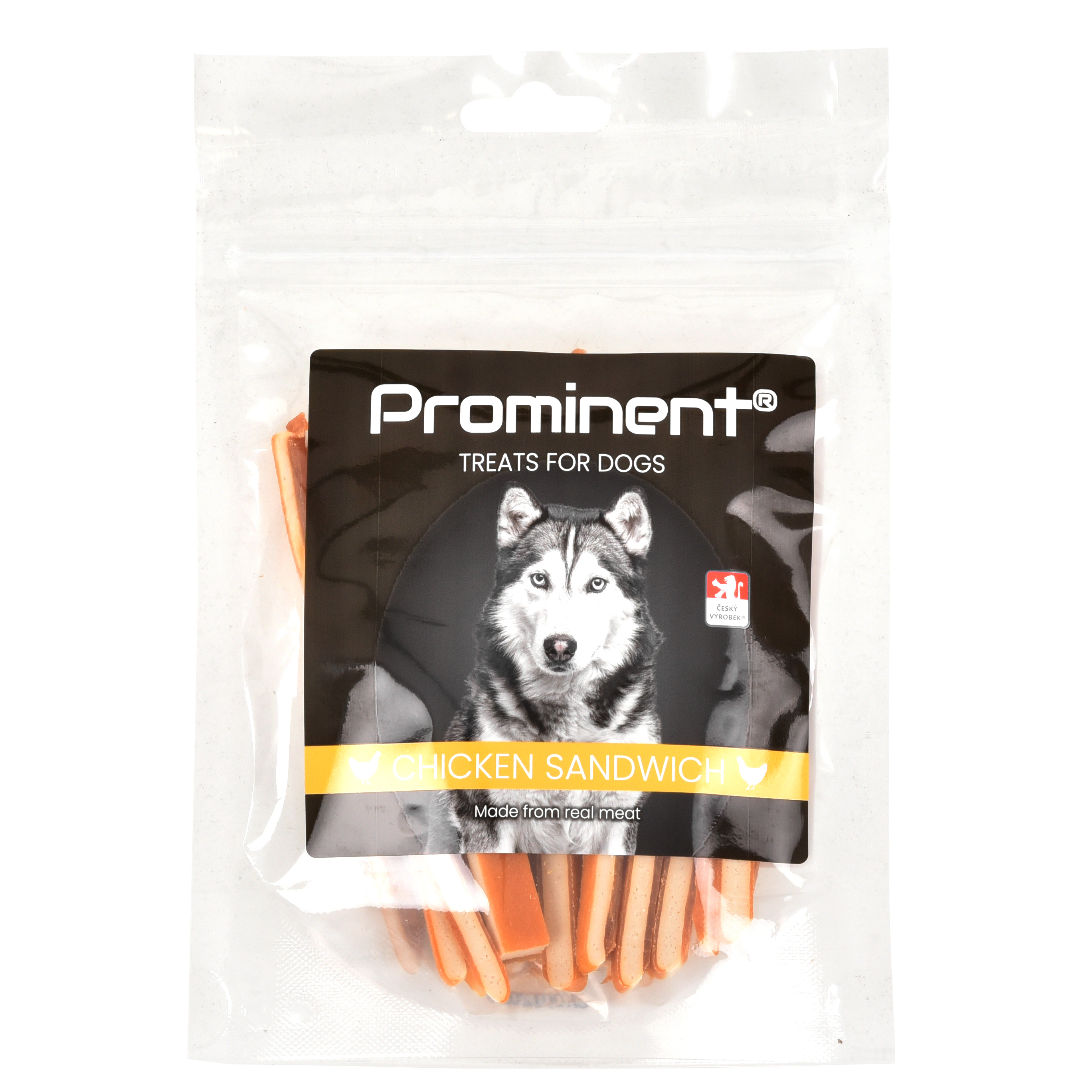 Pamlsek pro psy Prominent Chicken Sandwich – Psí pamlsky s lahodnou příchutí kuřete, které byly vyvinuty ve spolupráci s odborníky na výživu. Obsahují 40 % masa. K dostání je 80 g za cenu 49 Kč na www.hecht.cz a v kamenných prodejnách Hecht po celé ČR.