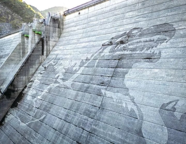- Čištěním přehrady v Japonsku vzniklo velkoformátové reverzní graffiti Godzilly