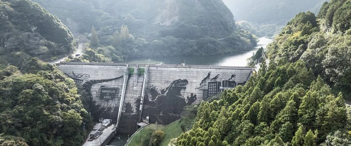 Na přehradě Iwayagawachi ve městě Ureshino, v japonské prefektuře Saga vznikla obří reverzní graffiti zobrazující Godzillu. Tímto uměleckým dílem oslavila prefektura ve spolupráci se společností Kärcher 70. výročí vzniku Godzilly a 50. výročí přehrady Iwayagawachi.