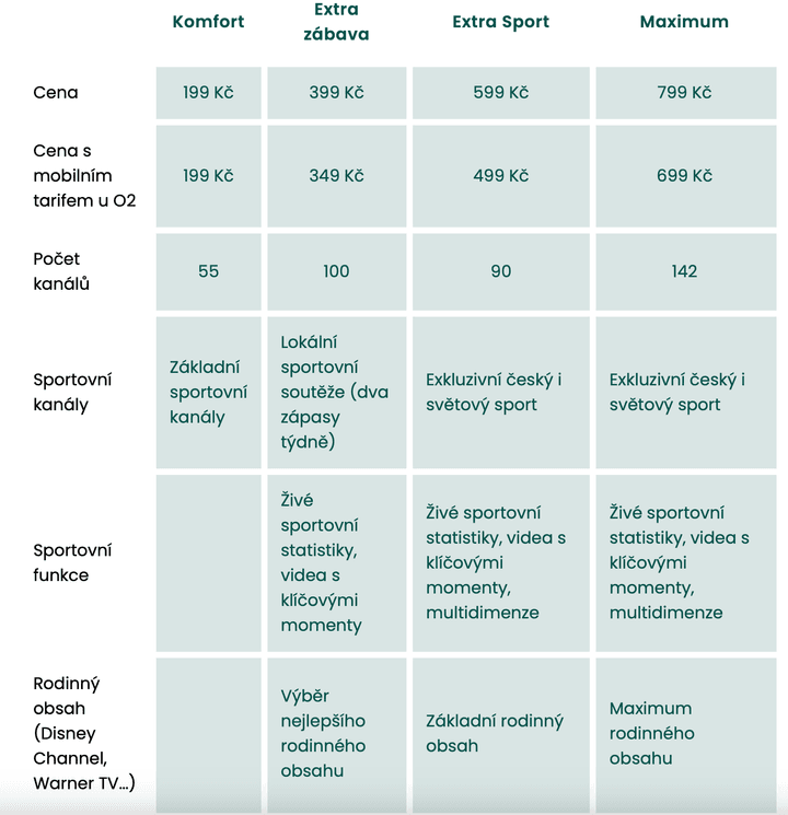 Na své si pak přijdou sportovní nadšenci, pro které je připraveno 25 sportovních kanálů a 30 domácích i zahraničních soutěží včetně hokejové Extraligy, basketbalové Euroligy, Ligy mistrů UEFA, MMA nebo Formule 1. Abyste zůstali v obraze a naplno si vychutnali sportovní zážitek, můžete využít funkce sestřihů nejdůležitějších okamžiků nebo detailních statistik a analýz přímo během zápasu. Díky takzvané multidimenzi pak můžete sledovat více utkání najednou.