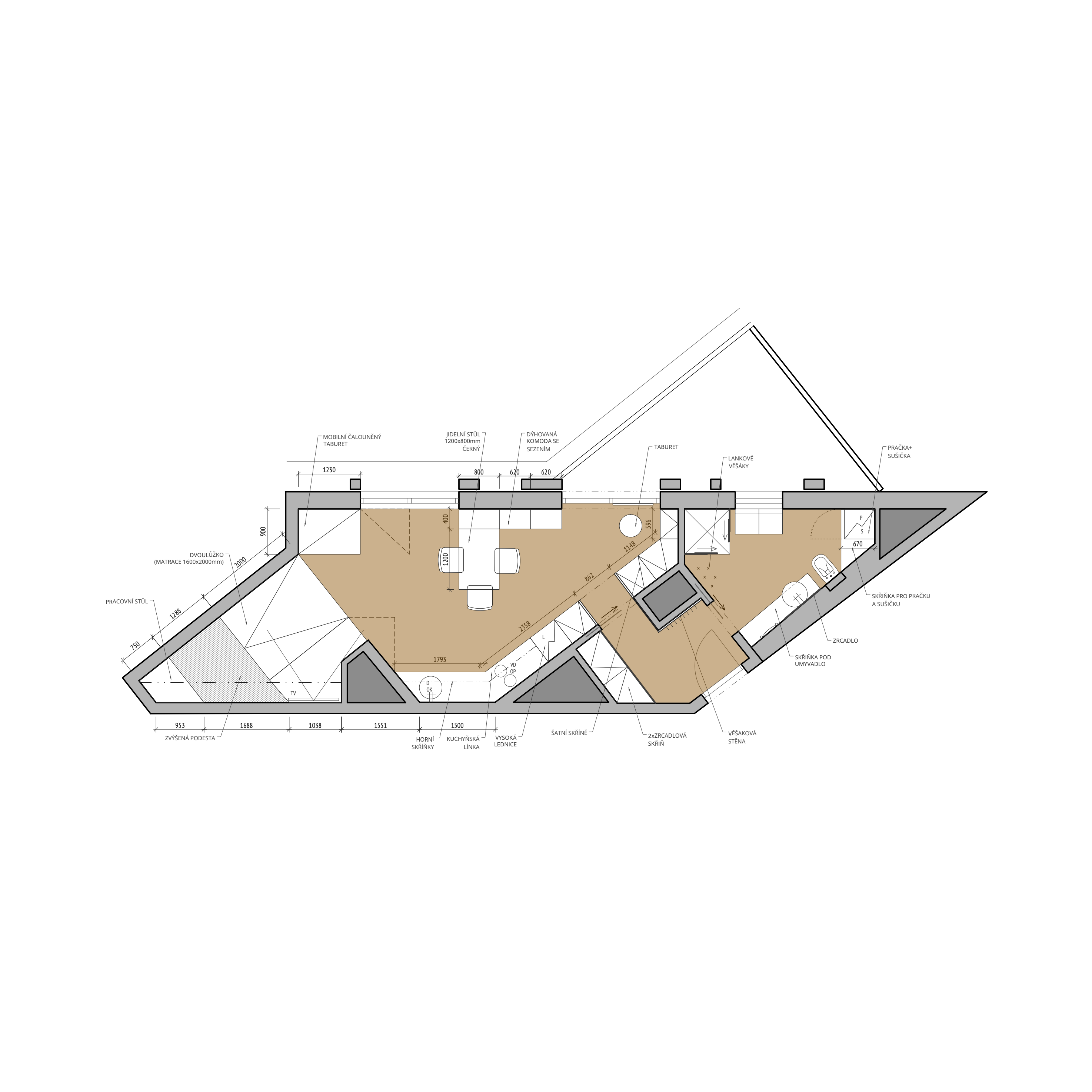 projekt Kamarumah architekti, nový půdorys BJ Harfa