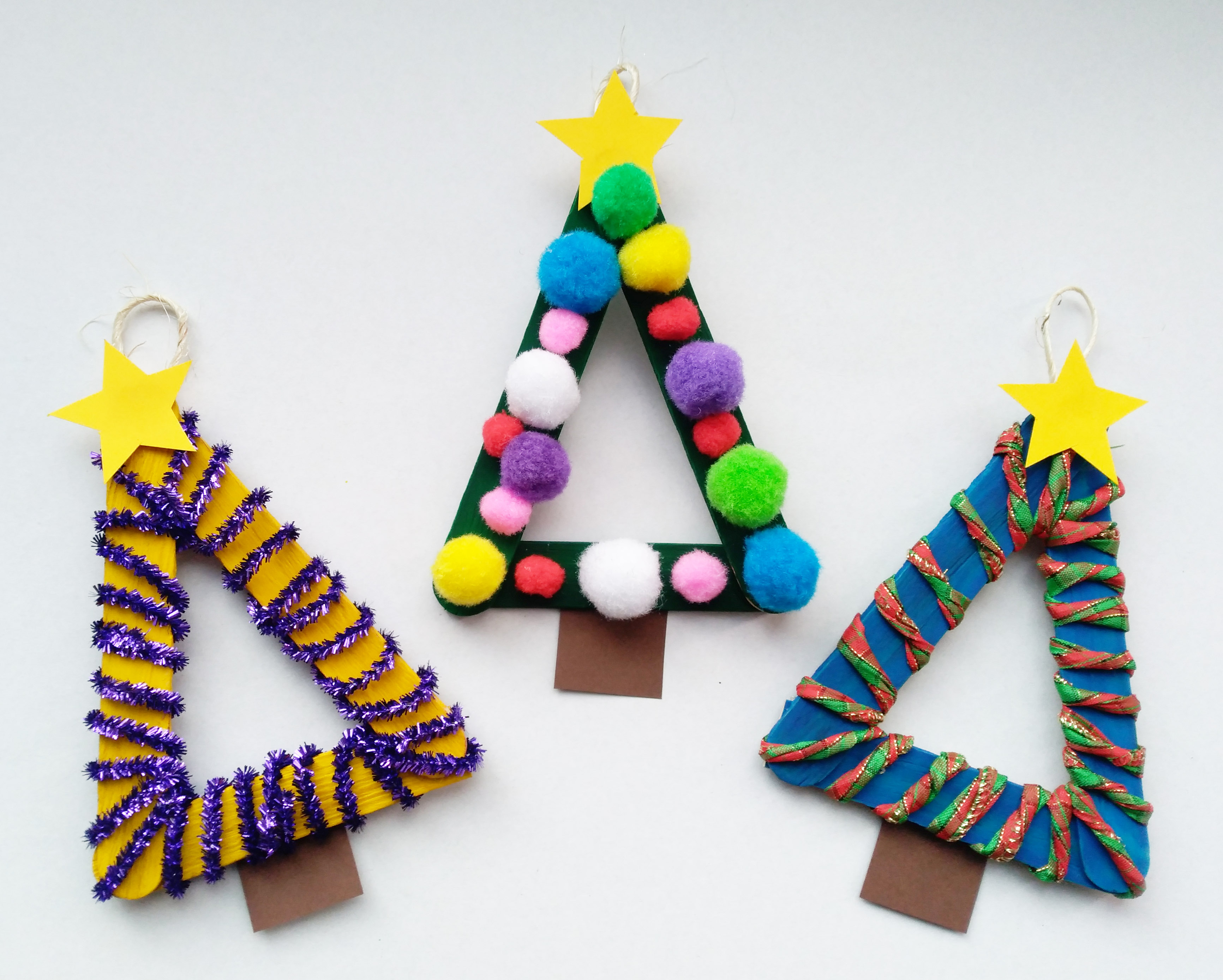 Buďte kreativní, je jen na vás, jak si své stromečky ozdobíte. Můžete použít malé bambulky, knoflíky, chlupaté modelovací drátky, rolničky atd.