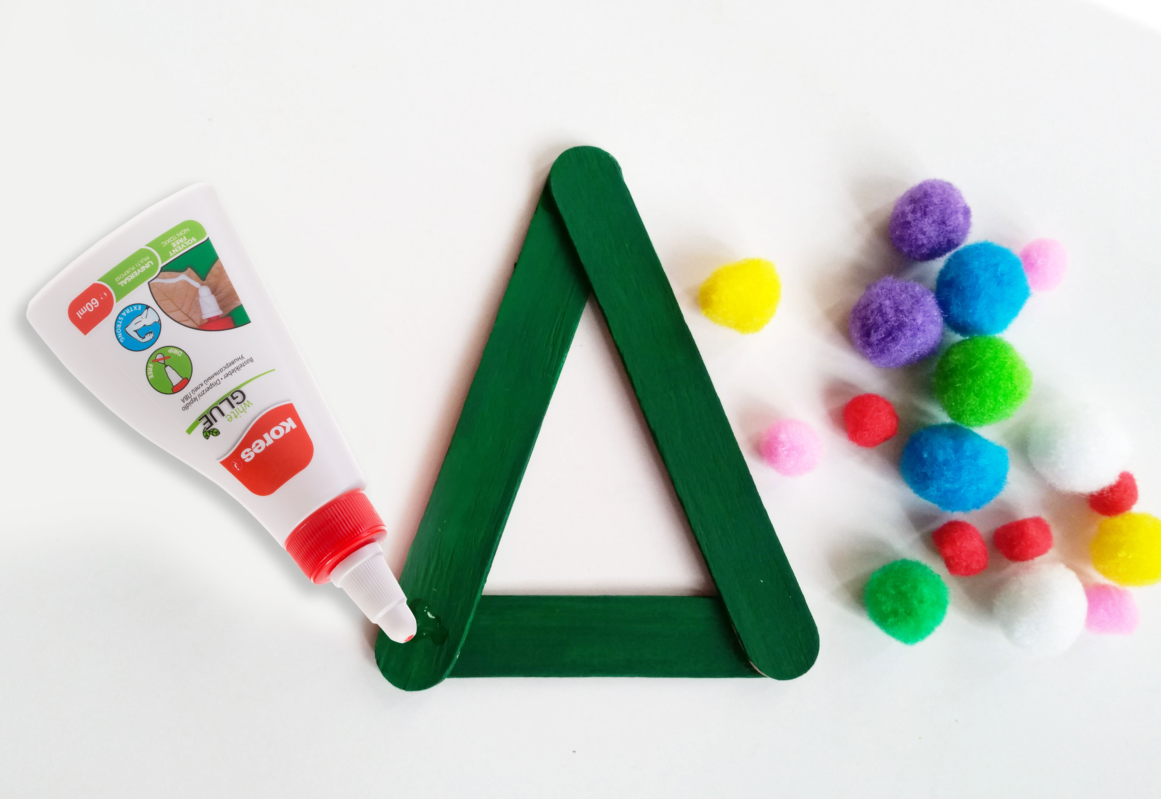 Sestavte špachtle do tvaru trojúhelníku a slepte pomocí lepidla na dřevo Kores Wood Glue.