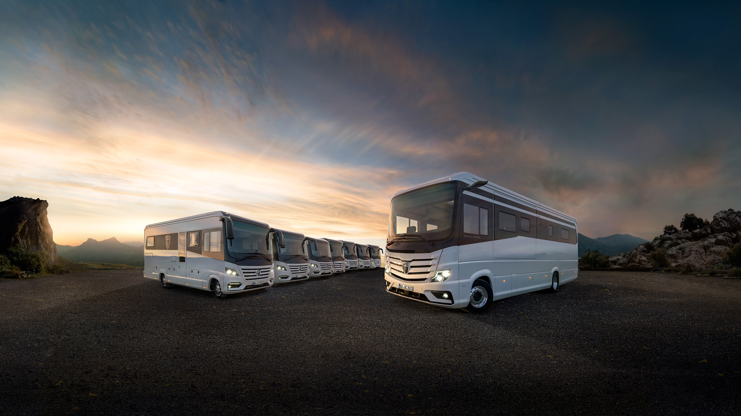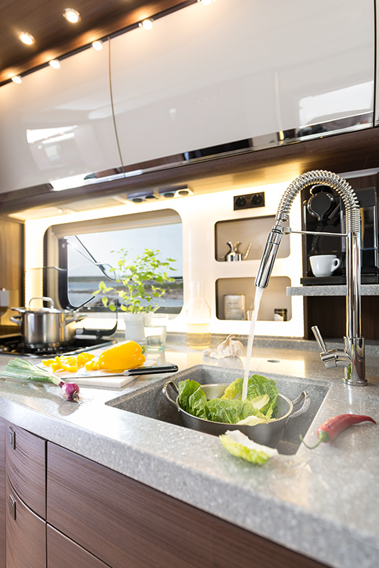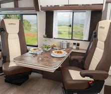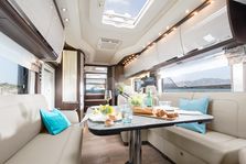 Samostatnou kapitolou je pak prostorný, designově a funkčně vymazlený interiér, kde se nezapře německá dokonalost. Dispozice vozu se liší podle modelů a velikostí, ale v žádném nechybí bohatě vybavený kuchyňský kout, ložnice s manželskou postelí a střešním panoramatickým oknem, prostorná koupelna i stůl s pohodlnými sedačkami. Samozřejmostí je také toaleta, podlahové vytápění, centrální vysavač, mobilní, ekologické a nezávislé zdroje energie SFC Energy, a další vychytávky, které znáte spíše z domova či luxusních hotelů.