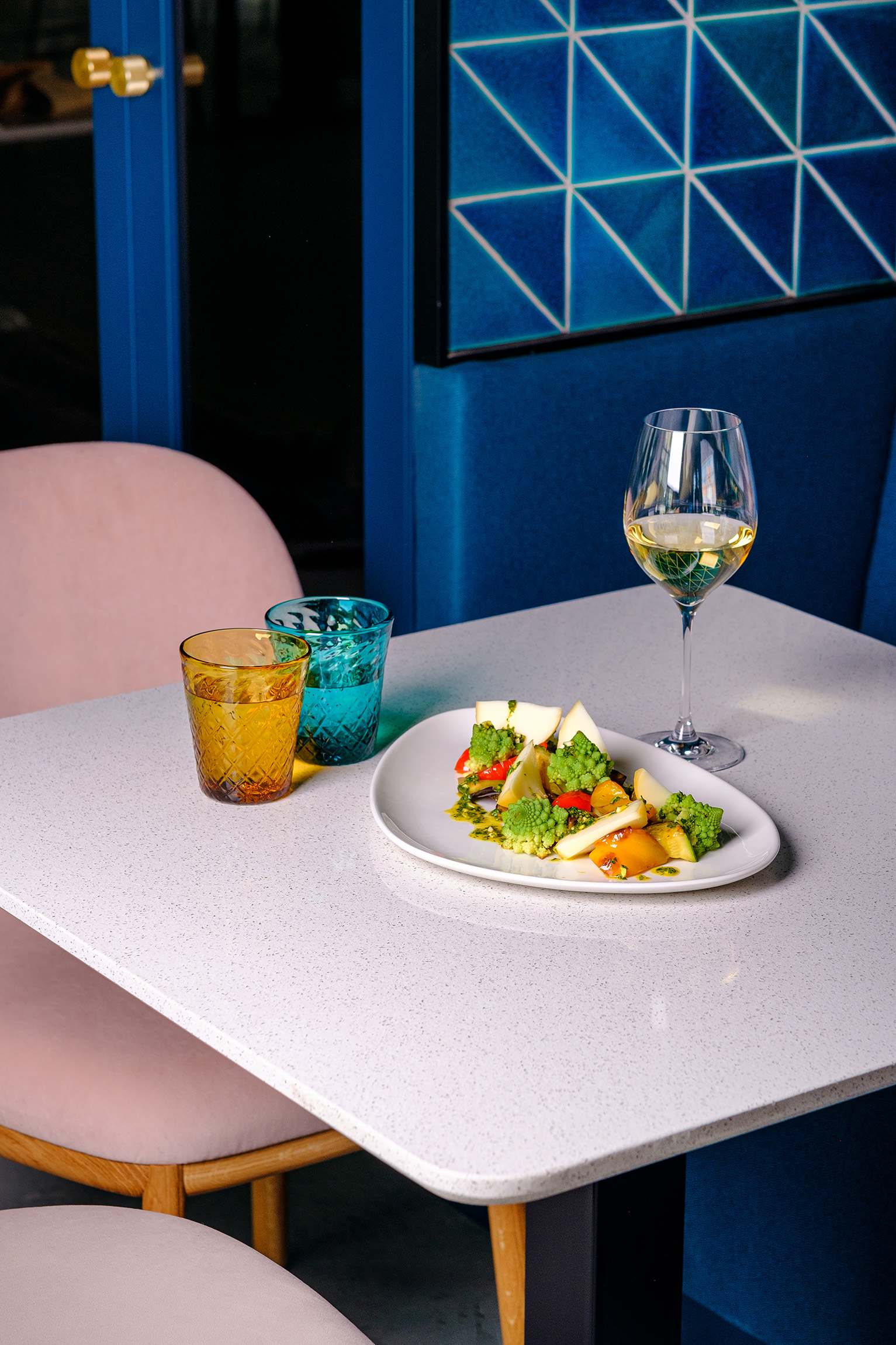 Myšlenka na vytvoření netradičního designu s kvalitními materiály se zrodila z aktuální inspirace chvíli před zahájením projektu. „Pár týdnů jsem strávil na severu Itálie. Nevinný gastro výlet se tak stal významným impulzem,“ vypráví Andrej Tušan a pokračuje „U všech projektů se snažíme co nejvíce uplatnit lokální zdroje. Většina materiálů a interiérových prvků pochází přímo z Čech nebo Slovenska, případně z dalších evropských zemí. V interiéru si můžete všimnout unikátní realizace dekorativního osvětlení, jehož skleněné části jsou vyráběny v Čechách a glazovaných keramických obkladů, které jsou ručně vyráběny na Slovensku.