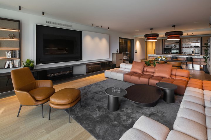 „Apartmán je od A do Z promyšleně navržen pro uživatele s vysokými nároky na funkčnost, kvalitu i estetickou úroveň. Extrémní důraz jsme kladli na výběr exkluzivního italského nábytku, který v symbióze s vestavným vybavením interiéru vyrobeným lokálně z místních zdrojů vytváří nezaměnitelnou atmosféru kombinující styl a pohodlí,“ vysvětluje architekt Tušan a dodává: „Zemitá barevná paleta vyzdvihuje eleganci, kompaktní dřevěné vestavné prvky se skrytou kuchyňskou linkou a důkladně řemeslně zhotovenými detaily tvoří estetický celek, který je umocněný designovými solitéry a doplňky.“