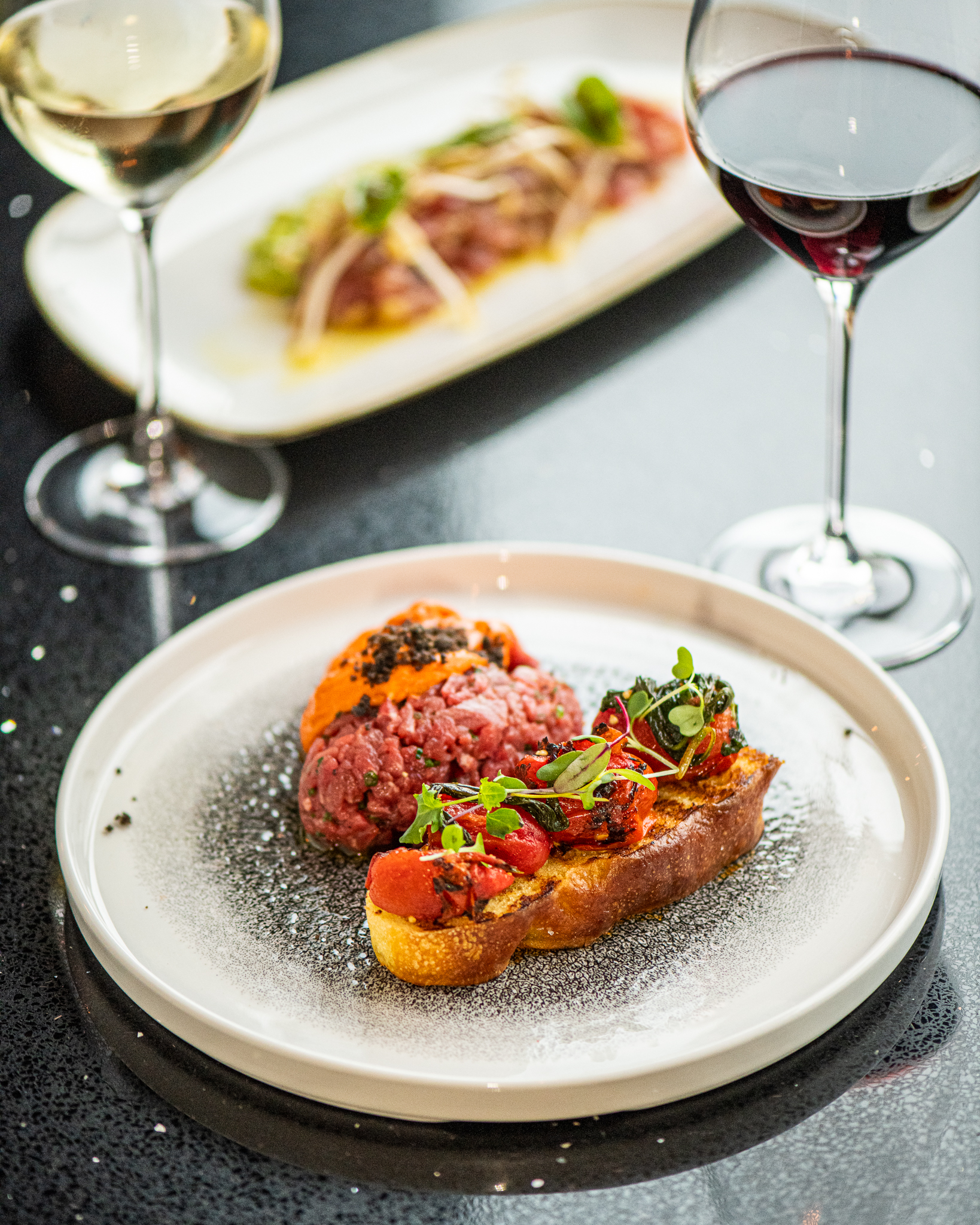 Hlavním chodem, u kterého šéfkuchař Jan Kliment kladl obzvláště důraz na chutě moderní a klasické kuchyně, je telecí tatarák se šalotkou, čerstvou vaflí, letním lanýžem, sušenými žloutky a pažitkovou majonézou. Dále pak tatarák z lososa s černým a bílým sezamem s dresingem ze sójové omáčky.
