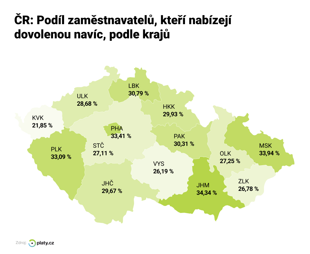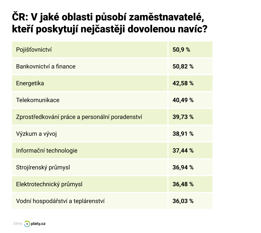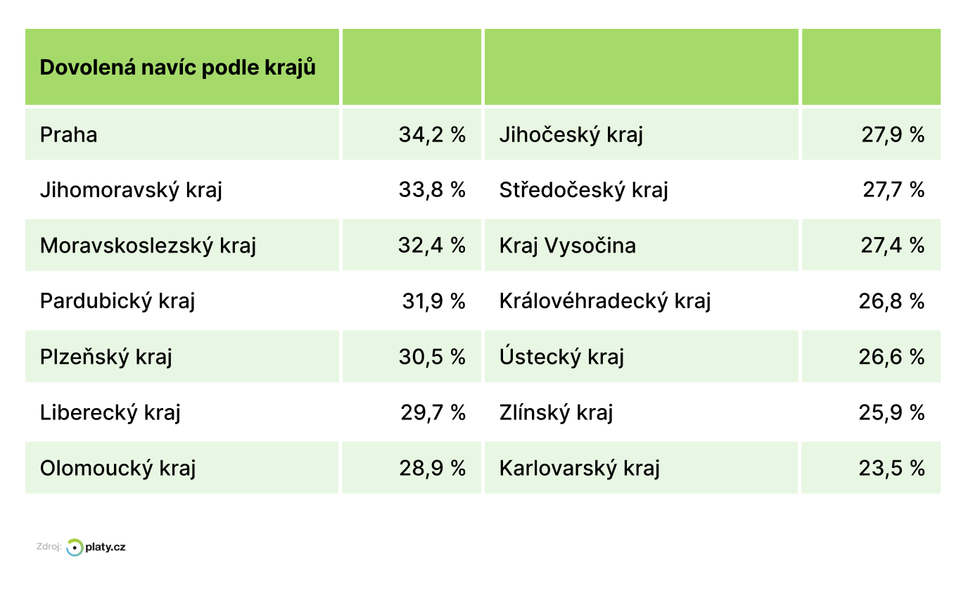 Dovolená navíc nejčastěji 2024, Platy.cz
