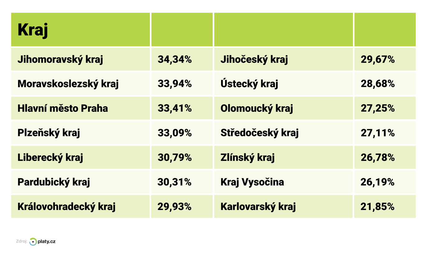 Podle krajů 2024, Platy.cz