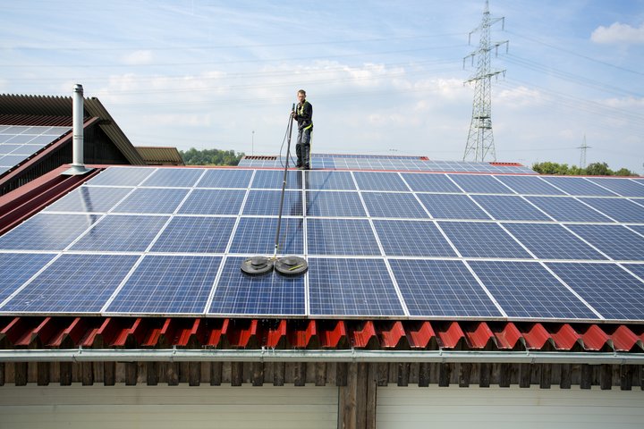 Nečistoty na solárních panelech snižují výrobu elektřiny až o 30 %. Lze je přitom odstranit pomocí řešení Kärcher iSolar, systému s rotačními kartáči připojeného k teleskopické tyči. Dvoukotoučové kartáče jsou poháněny dvěma kotoučovými kartáči uloženými na kuličkových ložiscích. Ty mají nylonové štětiny a nepoškrábou tak povrch panelu. Jsou poháněny protisměrným pohybem vody z vysokotlakého čističe v nízkotlakém režimu, a lze je proto s minimální námahou ovládat. Jsou připevněny k teleskopické násadě, kterou lze prodloužit až na délku 14 m.
